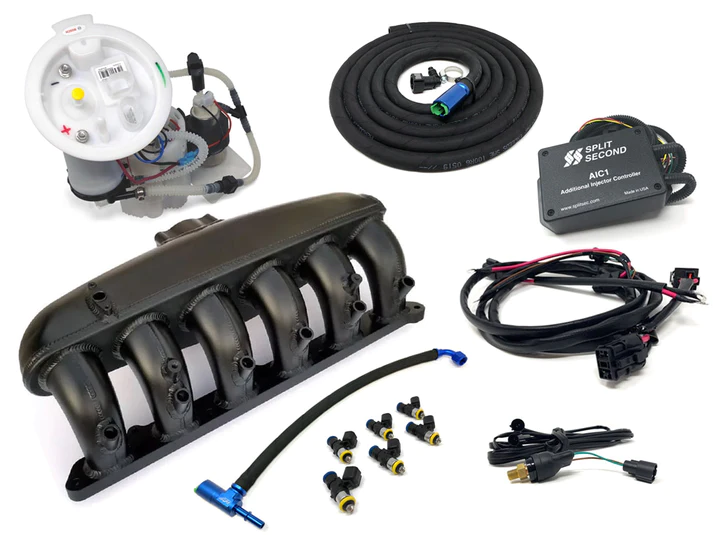 The complete kit integrates seamlessly into your car like it left from the factory with it installed! This kit includes everything needed to add multi-port injection and high performance low pressure system; best of all it is 100% e85 compliant.