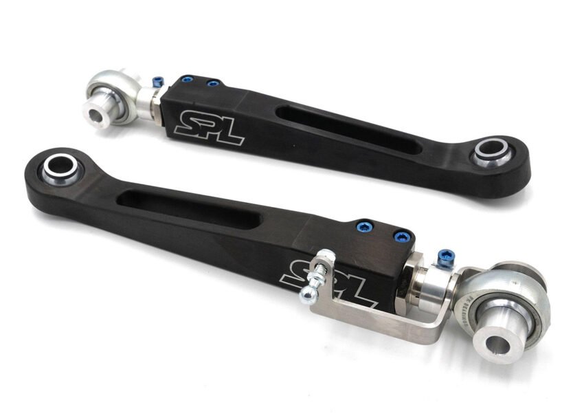 BMW F2X/F3X Front Lower Control Arms (FLCA) provide roll center, camber, and track width adjustment for the BMW F2X/F3X, and allow for full articulation with the proper ball joint angle. The main arm is slotted to allow the use of pinch bolts, and our rotating clamps on SPL Parts’ exclusive Double Adjuster lock down camber and track width settings. No more jam nuts!! Long gone are the days of fumbling with multiple wrenches to tighten jam nuts in place while trying to keep your bearings oriented correctly.