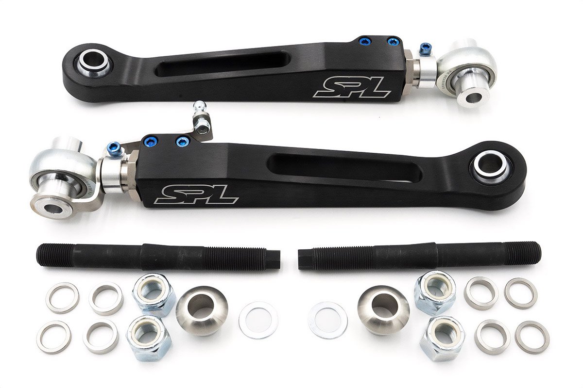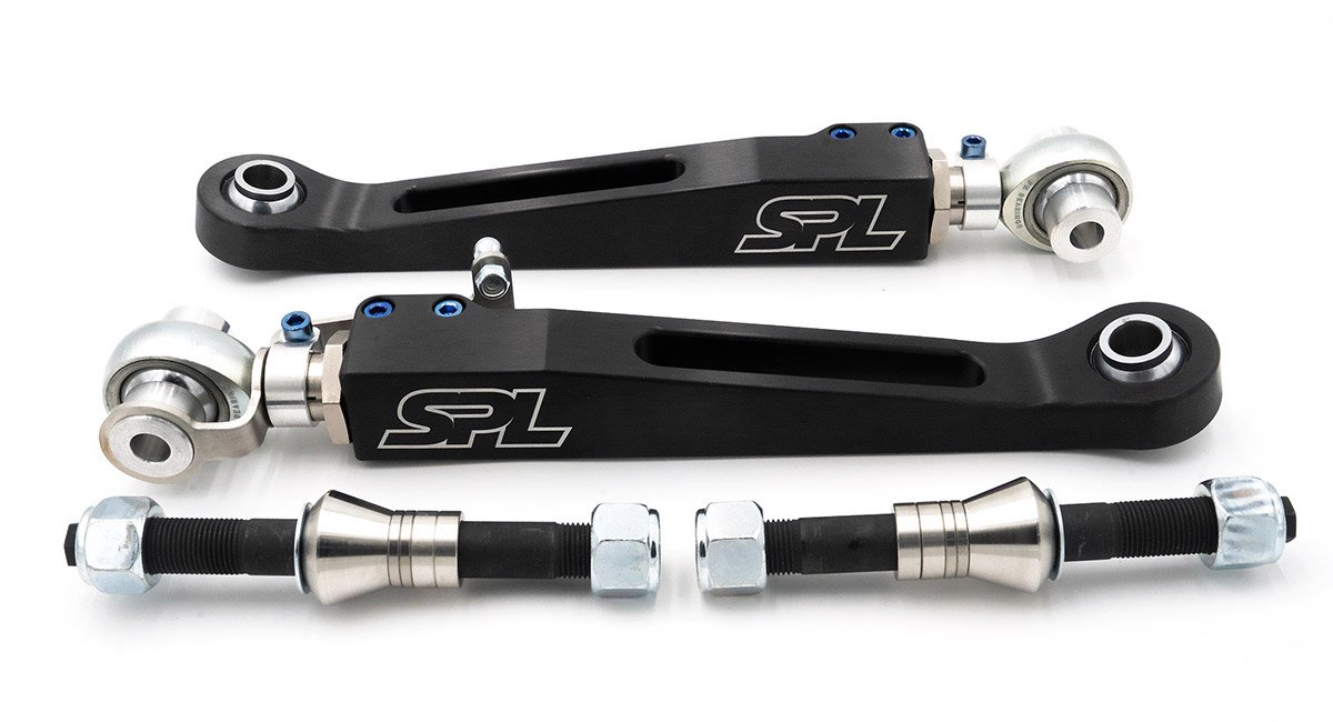 BMW F8X Front Lower Control Arms (FLCA) provide roll center, camber, and track width adjustment for the F8X BMW M2/M3/M4, and allow for full articulation with the proper ball joint angle. The main arm is slotted to allow the use of pinch bolts, and our rotating clamps on SPL Parts’ exclusive Double Adjuster lock down camber and track width settings. No more jam nuts!!  Long gone are the days of fumbling with multiple wrenches to tighten jam nuts in place while trying to keep your bearings oriented correctly.