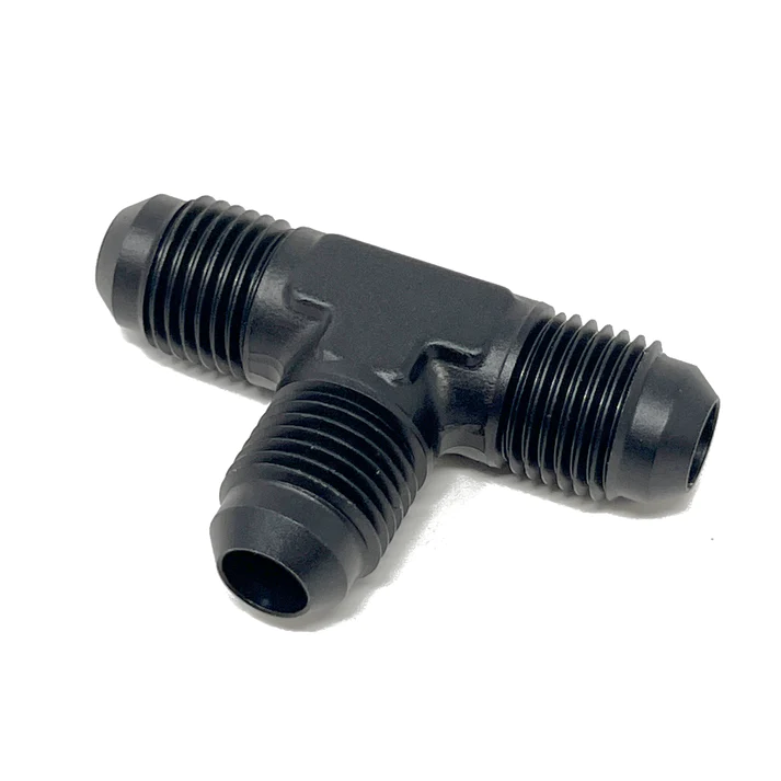Fuel line fitting TEE featuring AN-6 Male threads on all three ends.