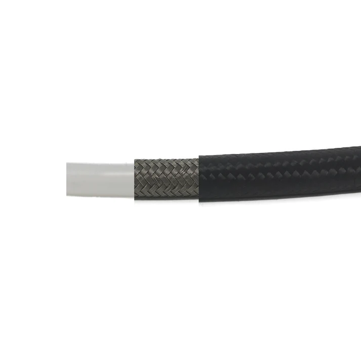 Our Smooth Bore PTFE fuel line is some of the best around, featuring a stainless steel braiding for protection, and a nylon braiding for protecting surface finishes. You can design and make your own fuel line to your own specifications!
